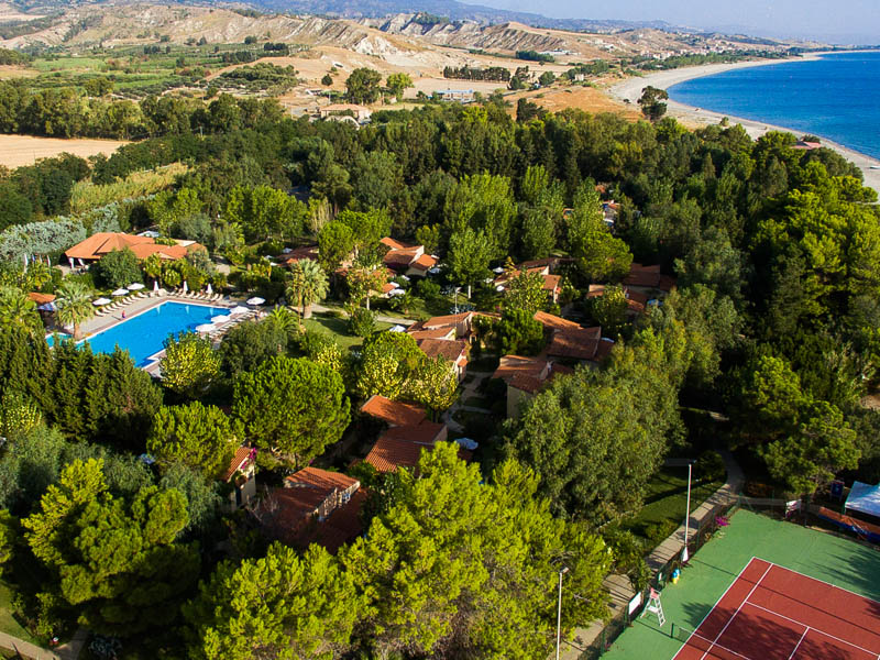 Delizioso resort immerso in cinque ettari di vegetazione con ampi giardini mediterranei, affacciato direttamente sul mare guardando un immenso arenile naturale a tratti selvaggio e inesplorato. Ombreggiato da palme, oleandri, eucalipti, è impreziosito da rigogliose bounganville, offre all'ospite la vera immagine della Magna Grecia.